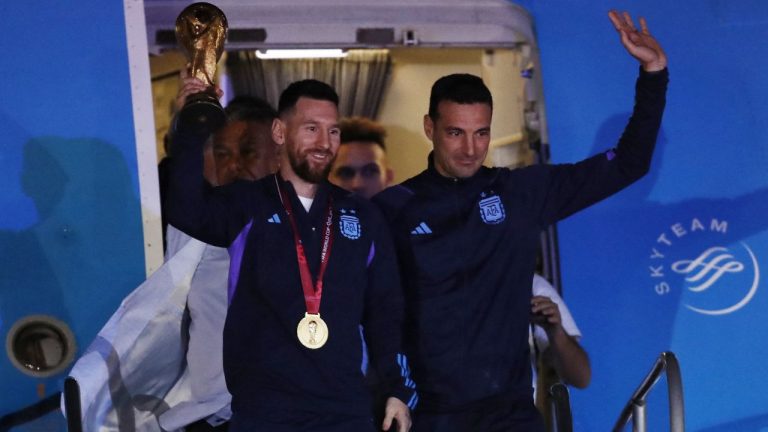 एजेन्सी । कतारमा सम्पन्न फिफा विश्वकप २०२२ को विजेता टोली अर्जेन्टिना स्वदेश पुगेको छ । लियोनल मेसीको कप्तानीमा रहेको अर्जेन्टिना मंगलबार बिहान अर्जेन्टिनाको राजधानी व्युनस आयर्सस्थित एजेइजा अन्तर्राष्ट्रिय विमानस्थलमा अवतरण गरेको हो । विमानस्थलमा अर्जेन्टिनाको टोलीलाई हजारौँ समर्थक स्वागतका लागि त्यस स्थानमा पुगेका थिए । अर्जेन्टिनी टिम २१ घण्टा लामो