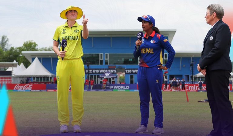 काठमाडौँ । आइसिसी यू–१९ महिला विश्वकपअन्तर्गत नेपालले आज आफ्नो समूहको अन्तिम खेल खेल्दैछ । समूह ‘डी’ मा नेपालले आज अस्ट्रेलियासँग प्रतिस्पर्धा गर्न लागेको हो । मलेसियाको क्वालालम्पुरमा हुने खेलमा अस्ट्रेलियाले टस जितेर ब्याटिङ रोजेपछि नेपालले पहिले फिल्डिङ गर्ने भएको छ । सुपर–६ समिकरणमा रहन नेपालले आज अस्ट्रेलियालाई पराजित गर्नैपर्ने दबाब
