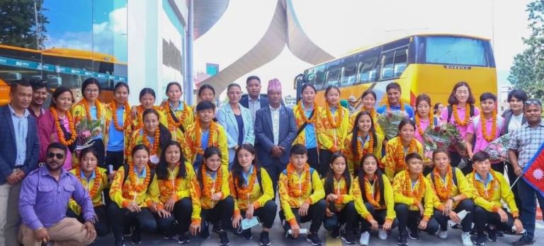 काठमाडौँ । नेपालमा आयोजना हुने महिला साफ फुटबल च्याम्पियनसीपमा सहभागी हुन आज भुटानको राष्ट्रिय महिला फुटबल टोली नेपाल आइपुगेको छ । यही भदौ २१ देखि असोज ३ गतेसम्म त्रिपुरेश्वरस्थित दशरथ रङ्गशालामा आयोजना हुने उक्त च्याम्पियनसीपमा सहभागिता जनाउनका लागि भुटानको टोली नेपाल आइपुगेको हो । साफ च्याम्पियनसीपमा सभागिता जनाउन आउने भुटान