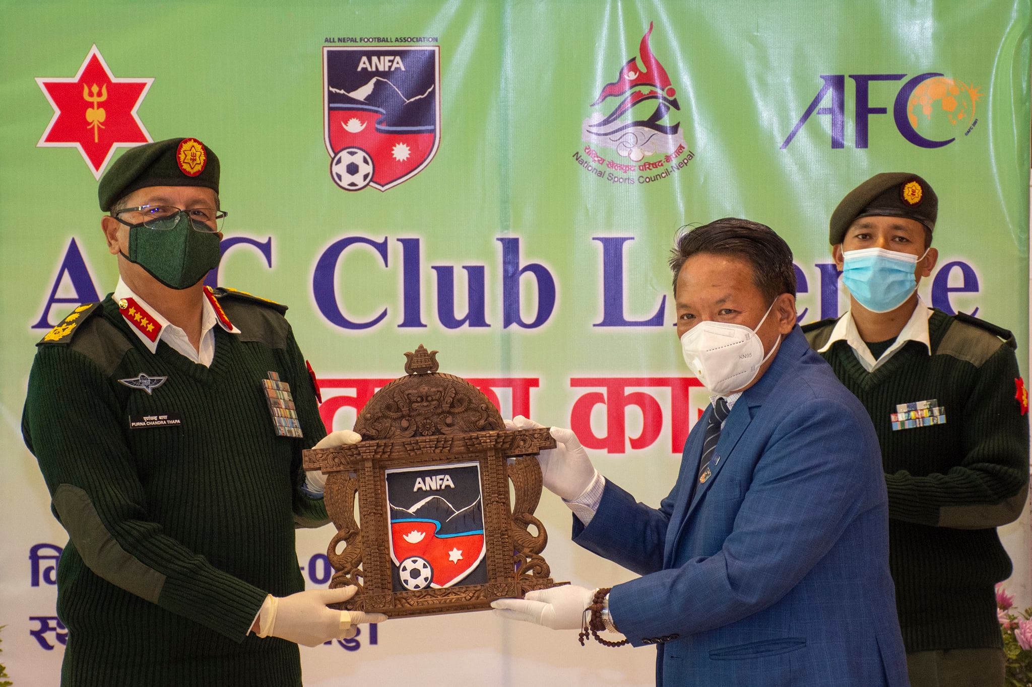 काठमाडौं । अखिल नेपाल फुटबल संघ (एन्फा)का अध्यक्ष कर्मा छिरिङ शेर्पाले विभागीय टोली त्रिभुवन आर्मी फुटबल क्लबलाई बुधबार एसियाली फुटबल