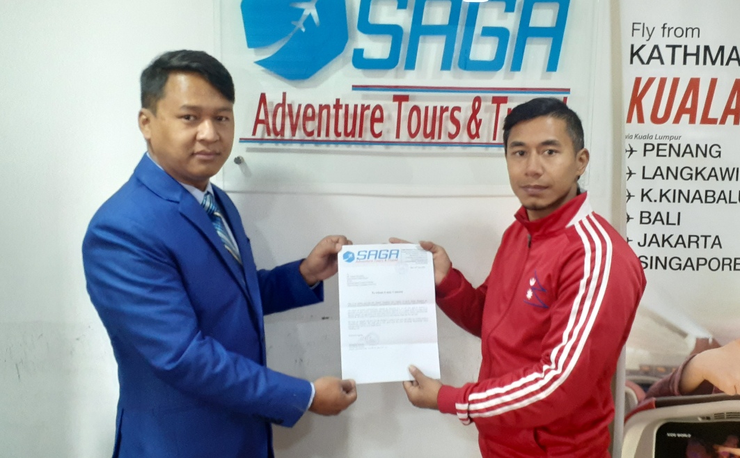 काठमाडौं । गोंगबु नयाँ बसपार्कस्थित सागा एडभेन्चर टुर्स एन्ड ट्राभल प्रा.लि.ले कराते खेलाडी सुमन तिमल्सिनालाई बुधबार ब्रान्ड एम्बासडरमा नियुक्त गरेको