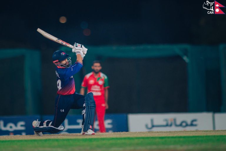 काठमाडौँ । आइसिसी ट्वान्टी–२० विश्वकप एसिया एन्ड इस्ट एसिया प्यासिफिक छनोटको सुपर सिक्सअन्तर्गत घरेलु टोलि ओमानलाई १५२ रनको लक्ष्य दिएको छ । टस जितेर ब्याटिङ थालेको नेपालले २० ओभरमा ९ विकेटको क्षतिमा १५१ रन जोड्यो । नेपालका लागि कुशल भुर्तेलले अर्धशतकीय पारी खेले । उनले ६९ रनको योगदान दिए ।