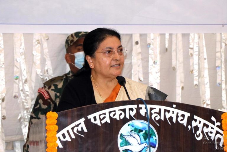 कर्णाली । राष्ट्रपति विद्यादेवी भण्डारीले लोकतान्त्रिक गणतन्त्र स्थापनामा प्रेस जगतको महत्वपूर्ण भूमिका रहेको बताउनुभएको छ । कर्णाली प्रदेशको राजधानी सुर्खेतको बीरेन्द्रनगरमा आज आयोजित नेपाल पत्रकार महासङ्घको साधारणसभा उद्घाटनमा बोल्दै राष्ट्रपति भण्डारीले मुलुकको व्यवस्था परिवर्तनका विभिन्न आन्दोलनमा पत्रकारिता जगतले महत्वपूर्ण योगदान पु¥याएको बताउनुभयो । “परिर्वतनबाट प्राप्त उपलब्धि संस्थागत गर्न चुनौती बढेको