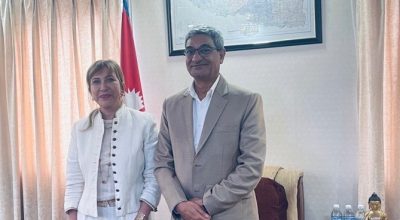 काठमाडौँ। गृहमन्त्री रमेश लेखकसँग संयुक्त राष्ट्रसङ्घीय आवासीय संयोजक हाना सिङ्गर हाम्दीले भेट गर्नुभएको छ । सिंहदबारस्थित गृह मन्त्रालयमा मन्त्री लेखक