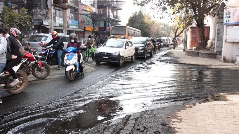 काठमाडौं । सिंहदरबारको पूर्वी गेट अगाडि ढल फुटेर दुर्गन्ध फैलिएको छ । ढल फुटेर सडकको आधा भाग ओगट्दा यस रुटमा चल्ने यातायातमा अवरोध सिर्जना भएको हो । ढलका कारण सडक हिलाम्मे भएको छ भने पैदल यात्री र सवारीसाधन चालहरुले सास्ती व्यहोर्नुपरेको छ । सिंहदरबार पूर्वी गेटमा मंगलवार दिउँसोदेखि ढल फुटेर