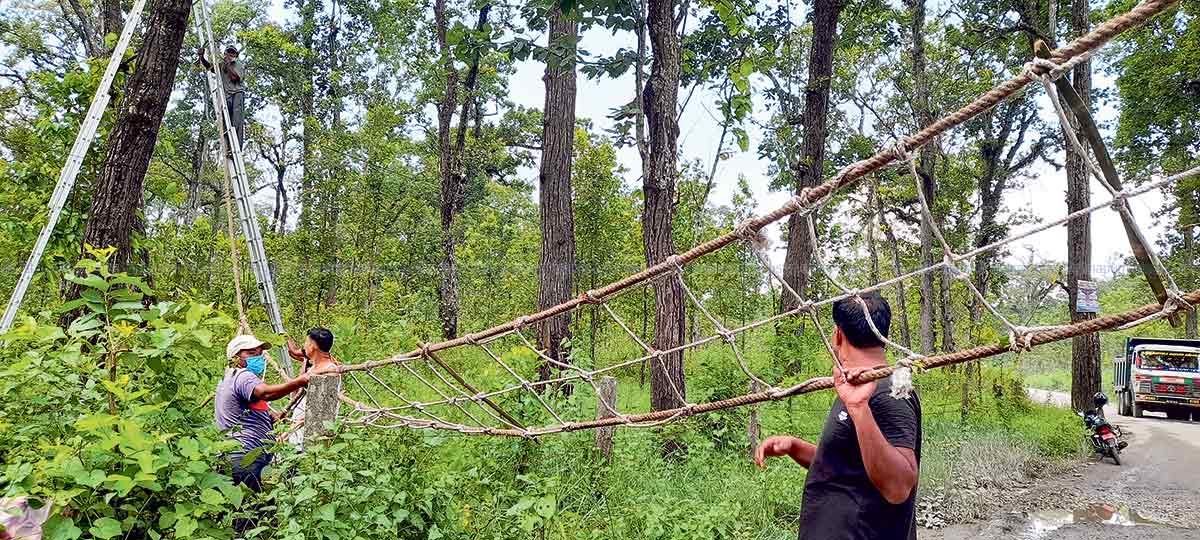 चितवन । सुन्दा अचम्म लाग्छ। बाँदरलाई पनि पुल ! तर यो सत्य हो। संरक्षित क्षेत्रमा सवारी दुर्घटनाबाट जोगाउन त्यस्ता वन्यजन्तुका