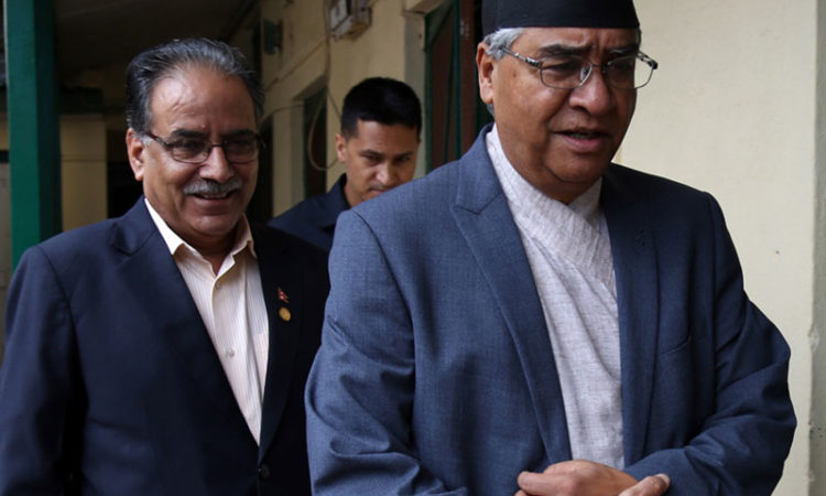 काठमाडौं । काँग्रेस सभापति शेरबहादुर देउवा र माओवादी केन्द्र अध्यक्ष पुष्पकमल दाहालबीच मंगलबार भेट भएको छ । सरकारलाई दिएको समर्थन