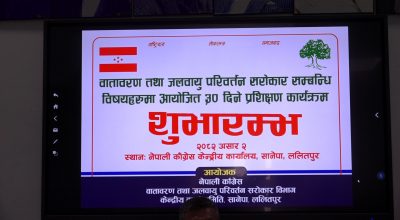 काठमाडौँ । नेपाली काँग्रसले वातावरण तथा जलवायु परिवर्तन सरोकारसम्बन्धी ३० दिने प्रशिक्षण कार्यक्रम शुरु गरेको छ । सोमवार पार्टी केन्द्रिय