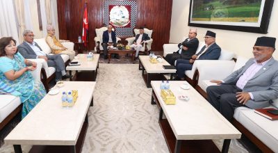 प्रधानमन्त्री केपी शर्मा ओलीले सत्तारुढ दल नेपाली कांग्रेसका शीर्ष नेताहरुसँग छलफल गर्नुभएको छ ।