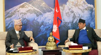 काठमाडौँ । राष्ट्रियसभाका अध्यक्ष नारायणप्रसाद दाहालसँग अर्थमन्त्री रामेश्वरप्रसाद खनाल र कानुन, न्याय तथा संसदीय मामिलामन्त्री अनिलकुमार सिन्हाले आज भेटवार्ता गर्नुभएको
