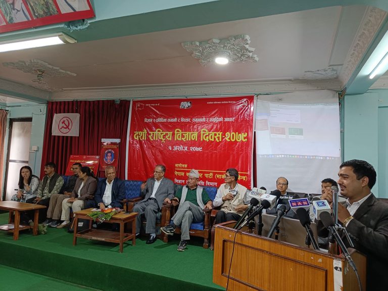 काठमाडौँ । नेकपा (माओवादी केन्द्र) का अध्यक्ष एवं पूर्व प्रधानमन्त्री पुष्पकमल दाहालले अध्यात्मवादलाई अन्धविश्वास र अज्ञानताको संज्ञा दिनुभएको छ । शनिवार पार्टी केन्द्रिय कार्यालयमा १० औं राष्ट्रिय विज्ञान दिवसको अवसरमा आयोजित कार्यक्रमलाई सम्बोधन गर्दै उहाँले यस्तो बताउनुभएको हो । उहाँले धर्मका नाममा ढुंगा पूज्दै हिँड्न विज्ञानसम्मत नभएको जिकिर गर्नुभयो ।