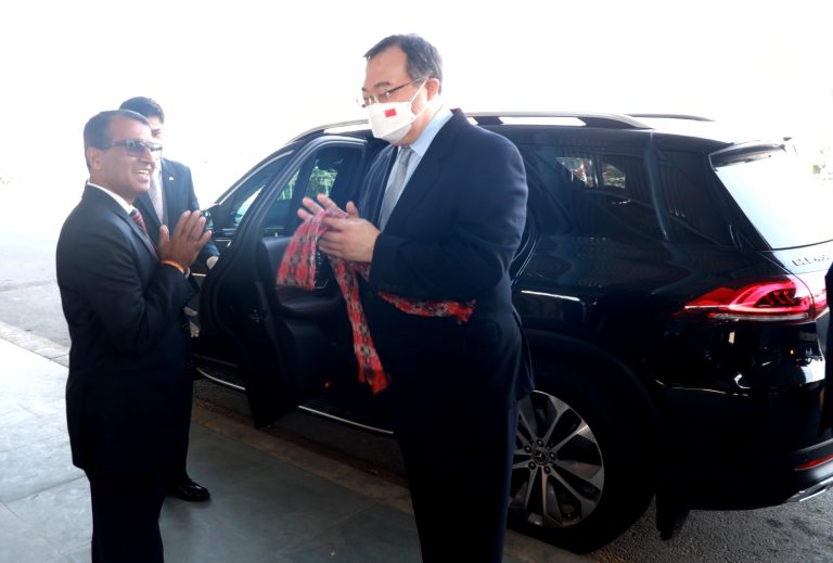 काठमाडौं । चिनियाँ कम्युनिष्ट पार्टीका नवनियुक्त विदेश विभाग प्रमुख लिउ जियान्चाओ नेतृत्वको सात सदस्यीय टोली आज बिहान काठमाडौं आइपुगेको छ । भ्रमण टोली बत्तिसपुतलीस्थित होटल द्वारिकामा बसेको छ । आजै दिउँसो चिनियाँ पाहुनाहरुले प्रधानमन्त्री शेरबहादुर देउवासँग प्रधानमन्त्री निवास बालुवाटारमा भेटघाट गर्नुभएको छ । त्यसपछि उहाँहरुले सिंहदरबारमा परराष्ट्रमन्त्री डा. नारायण खड्कासँग