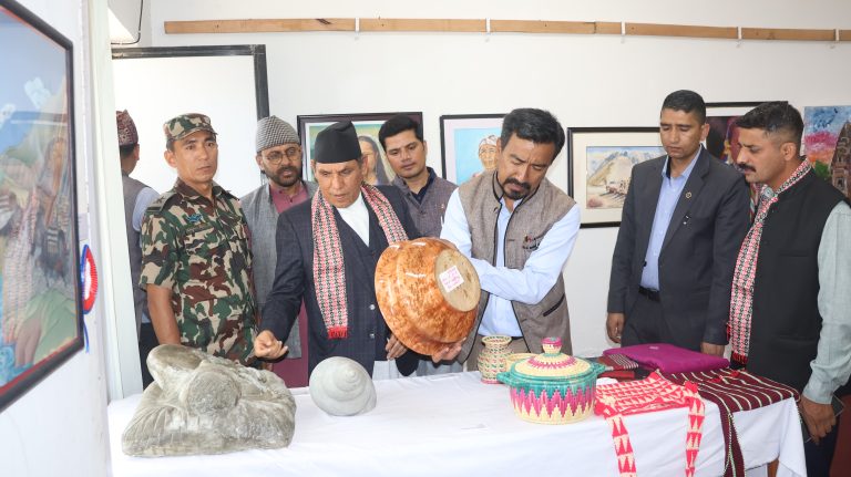 काठमाडौँ। राष्ट्रियसभा अध्यक्ष नारायणप्रसाद दाहालले नेपालका कला र सांस्कृतिक सम्पदाको संरक्षणमा ललितकलाको महत्त्वपूर्ण योगदान रहेको बताउनुभएको छ । उहाँले आज नक्सालस्थित ‘राष्ट्रिय ललितकला प्रदर्शनी २०८२’को भ्रमण गर्दै सातै प्रदेश प्रतिनिधित्व हुने गरी राखिएका कलाकृति प्रदर्शनीमा देख्न पाएकामा खुशी व्यक्त गर्दै नेपाल कलाका हिसाबले निक्कै धनी रहेको उल्लेख गर्नुभयो । अध्यक्ष