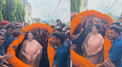 उहाँलाई त्यहाँ एमाले कार्यकर्ताहरुले ५१ किलोको माला लगाइदिएर सम्मान गरेका थिए । भण्डारीले बीआइसीसीआई बृहत महिला सम्मेलनमा सम्बोधन गर्ने कार्यक्रम