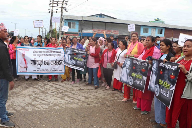 चितवन । व्यवसायी शङ्कर कँडेल मृत्यु प्रकरणमा किटानी जाहेरी दिइएका व्यक्तिलाई पक्राउ गर्नका लागि जिल्लाका निजी क्षेत्रहरूले दबाबस्वरूप शान्तिपूर्ण प्रदर्शन गरेका छन् । उद्योग वाणिज्य सङ्घ चितवन, उद्योग सङ्घ चितवनसहितका निजी क्षेत्रको अगुवाइमा आज जिल्ला प्रहरी कार्यालय चितवन अगाडि र जिल्ला प्रशासन कार्यालय अगाडि दबाबमूलक धर्ना कार्यक्रम गरिएको हो ।