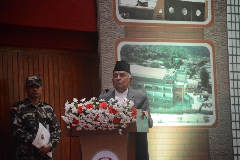 दमौली । राष्ट्रपति रामचन्द्र पौडेलले मुलुकको विकास र समृद्धिका लागि आफू निरन्तर लागिपर्ने बताउनुभएको छ । दलीय राजनीतिमा नलाग्ने भन्दै उहाँले विकास र सुशासनका लागि सदैव सक्रिय रहने बताउनुभयो । तनहुँको व्यास नगरपालिका–३ बिपी वनवाटिकामा निर्माण गरिएको दमौली सभागृहको आज उद्घाटन गर्नुहुँदै राष्ट्रपति पौडेलले विकासका कारण मुलुक पछाडि परेकाले विकासबाट