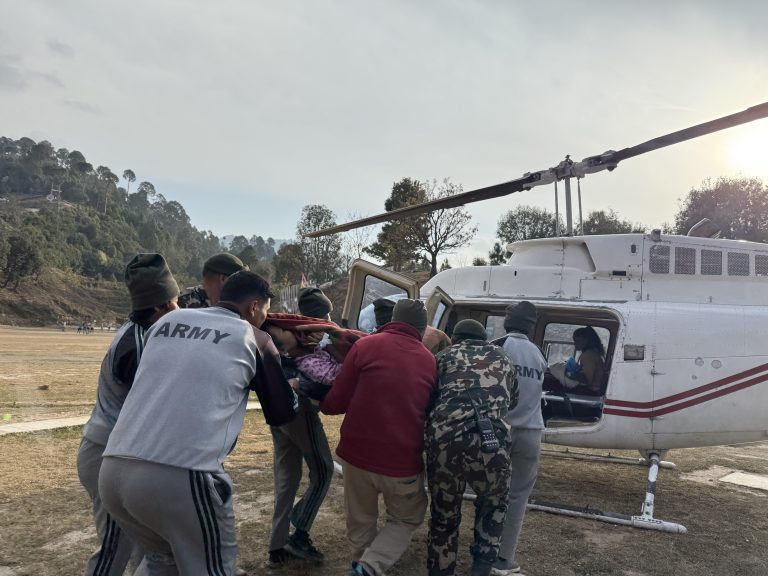 अछाम । अत्यधिक रक्तस्राव भएपछि अछामबाट एक सुत्केरीको हेलिकोप्टरमार्फत उद्धार गरिएको छ । जिल्लाको कमलबजार नगरपालिका–८ निवासी ३५ वर्षीया रङ्गादेवी भण्डारीले बच्चा जन्माएको र रक्तस्राव नरोकिएपछि आज हेलिकोप्टरमार्फत उद्धार गरिएको सहायक प्रमुख जिल्ला अधिकारी सन्तोष विकले जानकारी दिनुभयो । उहाँलाई राष्ट्रपति महिला उत्थान कार्यक्रमअन्तर्गत जिल्ला प्रशासन कार्यालय अछामको समन्वयमा उद्धार
