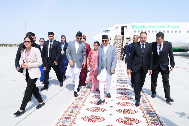तुर्कमेनिस्तान । प्रधानमन्त्री केपी शर्मा ओली भूपरिवेष्टित विकासशील राष्ट्रहरू (एलएलडिसी)को तेस्रो संयुक्त राष्ट्रसङ्घीय सम्मेलनमा सहभागिताका लागि आज तुर्कमेनिस्तान आइपुग्नुभएको छ । प्रधानमन्त्री ओली नेतृत्वको टाेली स्थानीय समय अनुसार दिउँसो १४.३० बजे दुबई अन्तर्राष्ट्रिय विमानस्थल हुँदै तुर्कमेनिस्तानको आवाजा सहर आइपुग्नुभएको हो । उहाँलाई तुर्कमेनिस्तानबासी अन्तर्राष्ट्रिय विमानस्थलमा तुर्कमेनिस्तान सरकार(मप)का उपाध्यक्ष होजाम्यारात जेल्डिम्यारादोभ,