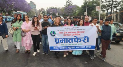 काठमाडौँ । विश्व प्रेस स्वतन्त्रता दिवसको अवसरमा नेपाल पत्रकार महासङ्घ काठमाडौँ शाखाले आज यहाँ प्रभातफेरी आयोजना गरेको छ । ‘नयाँ