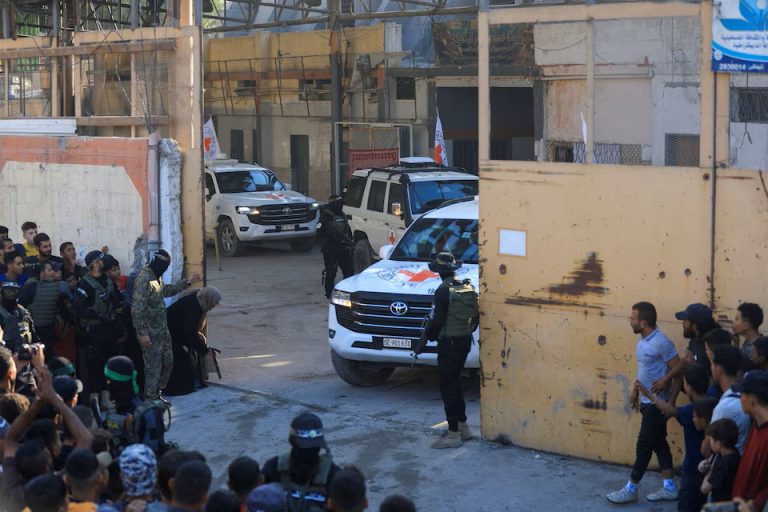 हमासले सोमबार गाजामा रहेका २० जीवित इजरायली बन्धकहरू मध्ये पहिलो सातजनालाई अन्तर्राष्ट्रिय रेडक्रसका प्रतिनिधिहरूलाई हस्तान्तरण गरेको छ ।