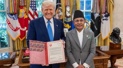 काठमाडौँ । संयुक्त राज्य अमेरिकाका लागि नेपाली राजदूत डा. लोक दर्शन रेग्मीले राष्ट्रपति डोनाल्ड ट्रम्पसमक्ष ओहादाको प्रमाण पत्र पेश गरेका