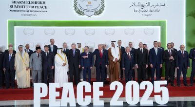 एजेन्सी । अमेरिकी राष्ट्रपति डोनाल्ड ट्रम्पले इजिप्टमा इजरायल–हमासबीच भएको अमेरिकी–मध्यस्थतामा युद्धविराम सम्झौताको स्वागत गर्दा उहाँका पछाडि उभिएका विश्व नेताहरू केवल