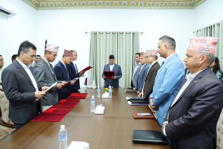 काठमाडौं, २९ साउन । प्रधानमन्त्री एवं कुलपति केपी शर्मा ओलीसमक्ष विभिन्न चार स्वास्थ्य विज्ञान प्रतिष्ठानका नवनियुक्त उपकुलपतिहरुले आज पद तथा गोपनीयताको सपथ लिनुुभएको छ । प्रधानमन्त्री तथा मन्त्रिपरिषद्को कार्यालय, सिंहदरबारमा भएको कार्यक्रममा विपी कोइराला स्वास्थ्य विज्ञान प्रतिष्ठानका उपकुलपति प्रा डा विक्रमप्रसाद श्रेष्ठ, कर्णाली स्वास्थ्य विज्ञान प्रतिष्ठानका उपकुलपति सह प्रा डा