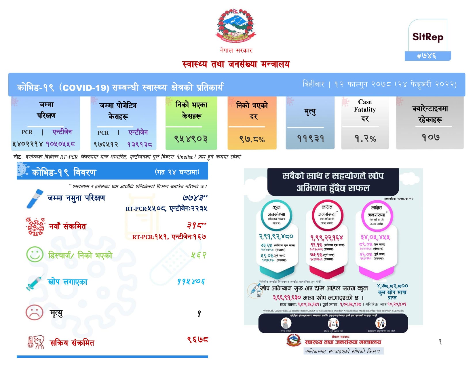 काठमाडौँ । देशभर पछिल्लो २४ घन्टामा थप ७३ जनामा कोरोना भाइरसको संक्रमण पुष्टि भएको छ । स्वास्थ्य तथा जनसंख्या मन्त्रालयका