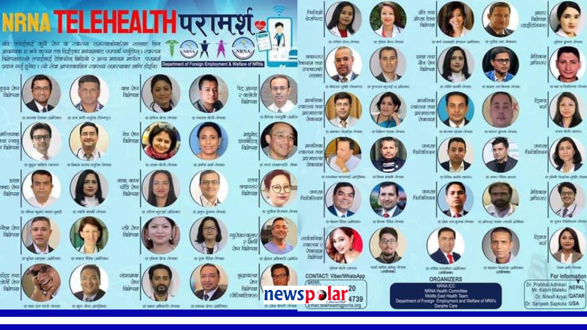 काठमाडौं । एनआरएनए (गैरआवासीय नेपाली संघ) ले टेलि–हेल्थ कार्यक्रमको शुभारम्भ गरेको छ । एनआरएनए अन्तरगतको स्वास्थ्य समिति तथा वैदेशिक रोजगार