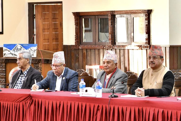 काठमाडौँ । मंगलबार साँझ बालुवाटारमा एउटा दृश्य देखियो देशको सबैभन्दा ठूलो पार्टी काँग्रेस र सत्तारुढ दलहरुबीच । बैठकप्रधानमन्त्री पुष्पकमल दाहाल ‘प्रचण्ड’ले बोलाएका थिए । आफूलाई विश्वासको मत दिने दलहरुको ‘सर्वदलीय बैठक’ प्रधानमन्त्रीले बोलाएका थिए । त्यसमा सहभागी थिए राष्ट्रिय जनमोर्चा र नेपाल मजदूर किसान पार्टी बाहेकका सबै । बैठकको सुरुमै