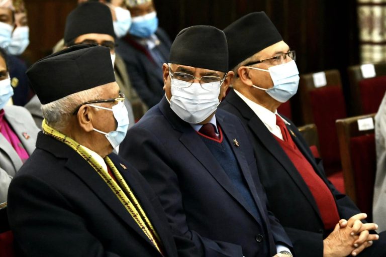 काठमाडौँ । डेढ वर्षपछि नेकपा (एमाले) अध्यक्ष केपी शर्मा ओली, नेकपा (माओवादी केन्द्र)का अध्यक्ष पुष्पकमल दाहाल प्रचण्ड र नेकपा (एकीकृत समाजवादी)का सम्मानित नेता झलनाथ खनालबीच अनौपचारिक भेट भएको छ । राष्ट्रपति कार्यालय शीतल निवासमा ज्येष्ठ सदस्य पशुपतिशमशेर जबराको पद तथा गोपनीयताको सपथ कार्यक्रममा तीन पूर्वप्रधानमन्त्रीको भेट जुरेको हो । तीनै