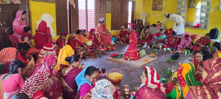 कञ्चनपुर। भाद्र शुक्ल पक्ष पञ्चमीदेखि विधिवत् रूपमा सुरु भएको गौरा पर्वको तेस्रो दिन आज गौरादेवीलाई घरमा भित्र्याइएको छ । आज व्रतालु महिलाले नजिकैको खेतमा गएर धानसँगै उम्रिएको साउँ (धानजस्तै देखिने घाँस)बाट गौराको प्रतिमा बनाएर ‘गौरादेवी’ लाई घरमा भित्र्याएका हुन् । खेतबाट धान, साँउधान, कुर्जोलगायत सङ्कलन गरी रातो कपडा वा घुम्टीमा