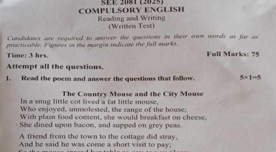 काठमाडौं । जनकपुरमा एसईई परीक्षा सुरु भएको एक घण्टा नबित्दै प्रश्नपत्र आउट भएको छ । आज बिहान ८ बजेदेखि सुरु