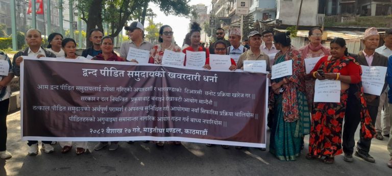काठमाडौं । द्वन्द्वपीडित समुदायले संक्रमणकालीन न्यायसम्बन्धी दुई आयोगमा पदाधिकारी नियुक्तिका लागि गठन गरिएको सिफारिस समिति खारेज गरी नयाँ समिति गठनको माग गर्दै आज काठमाडौं धर्ना दिएका छन् । अहिलेको सिफारिस समितिले एकलौटी रुपमा काम गरेको र भागबन्डाका आधारमा सिफारिस गर्न लागेको भन्दै द्वन्द्वपीडितले खारेजीको माग गरेका हुन् । आज बिहान