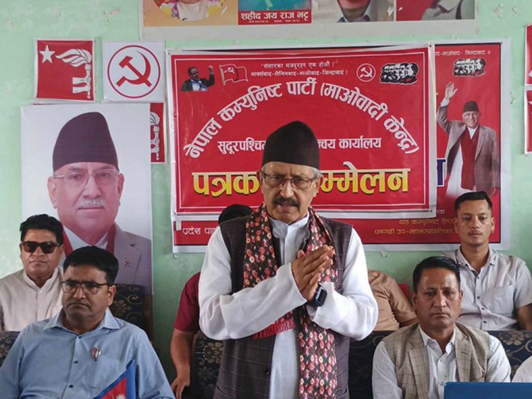 कैलाली। नेपाल कम्युनिष्ट पार्टी (माओवादी केन्द्र) का उपमहासचिव एवं सुदूरपश्चिम प्रदेश इन्चार्ज गिरिराजमणि पोखरेलले हुलाकी राजमार्ग केन्द्रित तराई मधेस जागरण अभियानले सकारात्मक सन्देश दिएको बताउनुभएको छ । तराई मधेस जागरण अभियानको उपलब्धिबारे आज धनगढीमा आयोजित पत्रकार सम्मेलनमा अभियान शानदार रूपमा सम्पन्न भएको बताउँदै अभियानले सकारात्मक सन्देश दिएको उहाँले बताउनुभयो ।