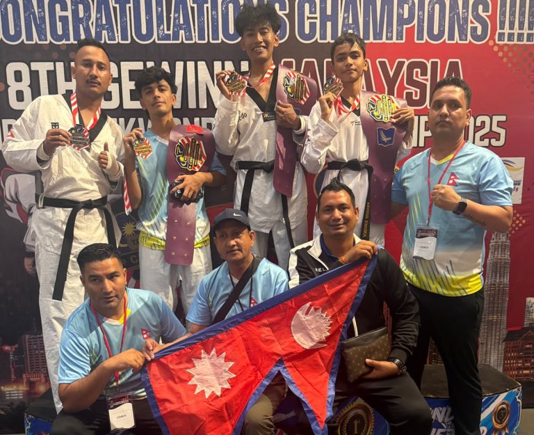 काठमाडौँ: नेपाली तेक्वान्दो खेलाडीले आठौं गेविन मलेसिया खुला अन्तर्राष्ट्रिय तेक्वान्दो प्रतियोगितामा शनिबार ३ स्वर्ण र १ रजत गरी ३ पदक जितेका छन् । मलेसियाको क्वालालम्पुरमा भएको प्रतियोगिताको पुरुष ४० केजीमुनि केनिश खड्का, ६६ केजीमुनि गोविन्द योञ्जन तामाङ तथा स्पिड किकमा आयुश बोहराले नेपाललाई स्वर्ण दिलाए । केनिशले मलेसिया, गोविन्दले पाकिस्तान