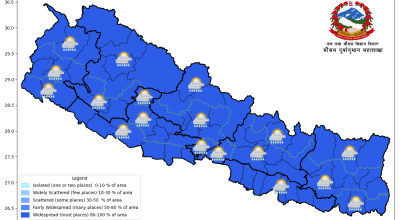 काठमाडौँ । मनसुनको न्यून चापीय रेखा तराई आसपास र पूर्वमा तराईभन्दा केही दक्षिणतिर रहेको जनाउँदै मौसम पूर्वानुमान महाशाखाले आज देशका