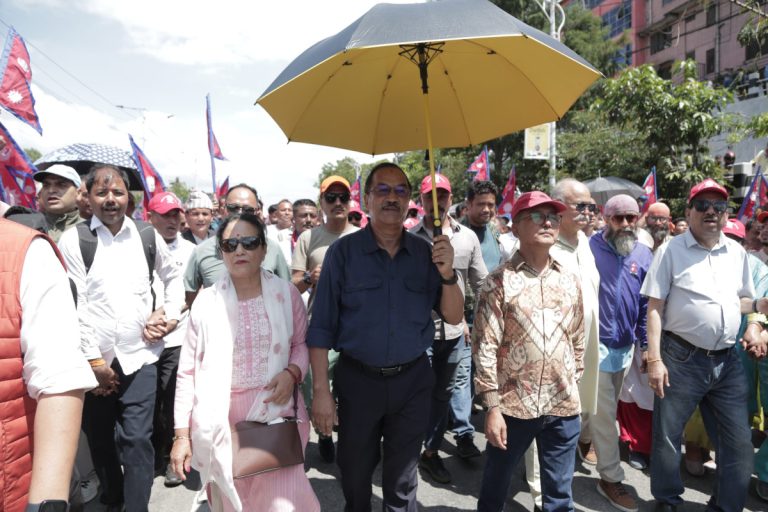 राजसंस्था पुनस्थापनाका लागि संयुक्त जनआन्दोलन समितिको आह्वानमा शुक्रबार दिउँसो काठमाडौंको सुकेधाराबाट सुरु भएको र्याली बल्खुसम्म पुगेको थियो ।