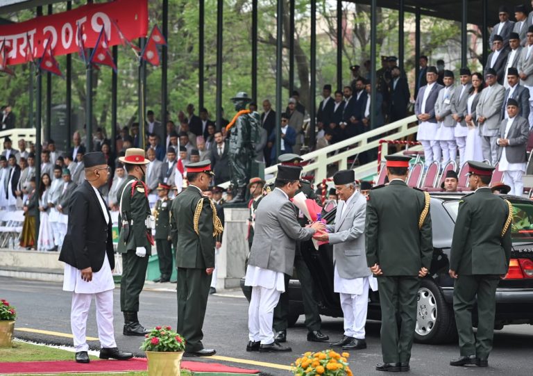 कतारका अमिर शेख तमिम विन हमाद अल थानी राष्ट्रपति भवन शीतल निवास आइपुग्नुहुँदा उहाँलाई राष्ट्रपति पौडेलले स्वागत गर्नुभएको थियो ।