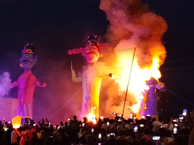 जलेश्वर, (महोत्तरी) । असत्यमाथि सत्यको विजयको प्रतीक शारदीय नवरात्राको क्रममा महोतरीको सदरमुकाम जलेश्वरमा विजया दशमीका दिन रावणका तीन वटा पुतला (प्रतिमा) दहन गरिएको छ । रामले रावणमाथि विजय प्राप्त गरेको खुसियालीमा रावणको प्रतिमा बनाएर (दहन गरिने) जलाउने कार्य त्रेतायुगदेखि चल्दै आएको विश्वास छ । यसवर्ष महोत्तरीको सदरमुकाम जलेश्वर नगरपालिकाको वडा