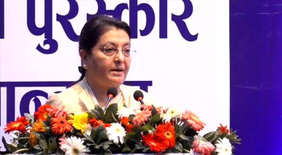 खुट्टाले टेकेर हिँड्नुपर्ने देशको अर्थतन्त्र टाउकाले टेकेको छः पूर्वराष्ट्रपति भण्डारी