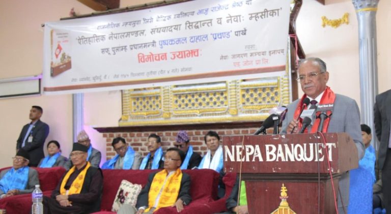 काठमाडौँ। नेपाल कम्युनिष्ट पार्टी (माओवादी केन्द्र)का अध्यक्ष पुष्पकमल दाहाल ‘प्रचण्ड’ले सङ्घीय लोकतान्त्रिक गणतन्त्रलाई सुदृढ बनाउन निर्वाचन प्रणाली र शासकीय स्वरुप परिवर्तन गर्नुपर्नेमा जोड दिनुभएको छ । जनता समाजवादी पार्टी (जसपा), सङ्घीय परिषद् अध्यक्ष राजेन्द्र श्रेष्ठद्वारा लिखित ‘ऐतिहासिक नेपालमण्डल, सङ्घवादया सिद्धान्त व नेवाः म्हसीका’ पुस्तकको आज यहाँ लोकार्पण गर्दै उहाँले पूर्णसमानुपातिक