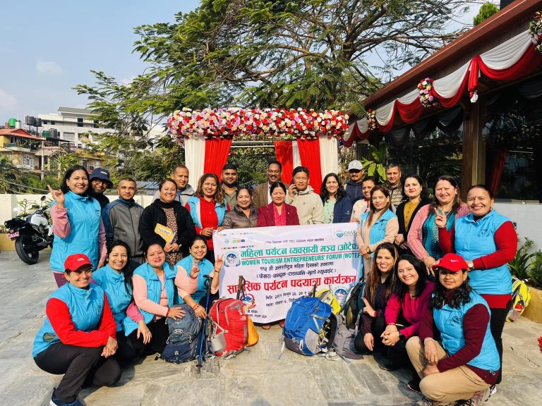 गण्डकी । महिला पर्यटन व्यवसायी मञ्च ९ओटेफ०ले ११५औँ अन्तरराष्ट्रिय महिला दिवसका अवसरमा आजदेखि तीनदिने साहसिक पदयात्रा सुरु गरेको छ । गण्डकी प्रदेशको उद्योग तथा पर्यटन मन्त्रालयको सहयोगमा पोखरादेखि ‘उचाइहरू जित्दै सीमाहरू तोड्दै’ भन्ने नाराका साथ सुरु गरिएको पदयात्रा घान्द्रुक, टाडापानी, दोबाटे हुँदै मुल्डे भ्युप्वाइन्टसम्म सञ्चालन हुने मञ्चका अध्यक्ष उमा रेग्मी