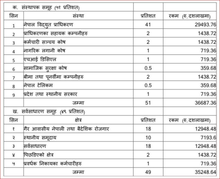 काठमाडौँ । अपर अरुण जलविद्युत आयोजनामा १२ अर्ब ९५ करोड रुपैयाँ बराबरको शेयर एनआरएन र विदेशमा रहेका नेपालीलाई दिने प्रश्ताव गरिएको छ । नेपाल विद्युत प्राधिकरणको अगुवाइमा सङ्खुवासभाको भोटखोला गाउँपालिकामा निर्माण हुने १ हजार ६३ मेगावाटको माथिल्लो अरुण अर्धजलाशययुक्त जलविद्युत आयोजनामा १२ अर्ब ९५ करोड रुपैयाँ बराबरको सेयर गैह्र आवासीय