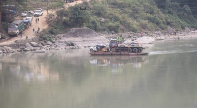 पानीको बहाव बढेसँगै अरुण नदीमा सञ्चालित फेरी बन्द