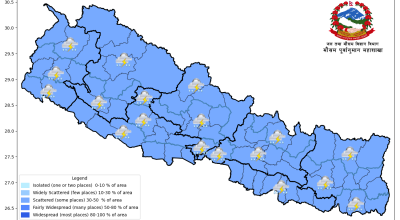 आजको मौसम पूर्वानुमान : देशभर मध्यम वर्षाको सम्भावना