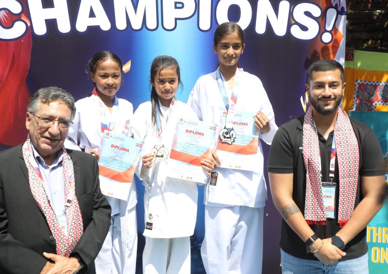 काठमाडौँ । नेपालकी अन्भी शाहीले इन्डो–नेपाल कराते प्रतियोगिताको पहिलो दिन आज दोहोरो स्वर्ण जितेकी छन् । अन्भीले महिला २०–२५ केजी तौल समूह र आठ–नौ वर्ष उमेर समूहमा स्वर्ण जितेकी हुन् । वनस्थलीस्थित आयोजक समृद्धि स्कुलको खेल परिसरमा भएको प्रतियोगिताको २०–२५ केजी तौल समूहको फाइनलमा अन्भीले नेपालकै माभेवामा लामालाई पराजित गरिन्
