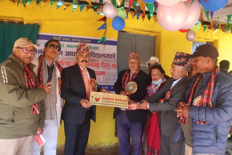 भोजपुर। भोजपुरको भोजपुर नगरपालिका–९ काफ्लेस्थित जनकल्याण आधारभूत विद्यालयमा इ–लर्निङ सेन्टर स्थापना गरिएको छ । विद्यार्थीहरुलाई समय सापेक्ष प्रविधिमैत्री शिक्षणमा जोड दिन ईश्वर मन्दिर काठमाडौँ अभियानले विद्यालयमा इ–लर्निङ सेन्टर स्थापना गरिदिएको हो । १० थान डेस्कटप कम्प्युटर, एक थान स्मार्ट टिभी उपलब्ध गराइ यहाँ सेन्टर सञ्चालनमा ल्याइएको ईश्वर मन्दिर काठमाडौँका महासचिव