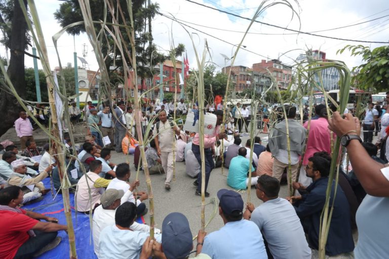 काठमाडौँ । मधेश प्रदेशसहित देशभरका उखु किसानहरुले सरकारले तोकेको प्रतिक्विन्टल ७० रुपैयाँ अनुदान र बक्यौता रकम भुक्तानी गर्न माग गर्दै सोमवार पनि आन्दोलन जारी राखेका छन् । आर्थिक वर्ष २०८१/८२ को उखुको भुक्तानी रकम माग गर्दै किसानहरुले सोमवार माईतीघर–बानेश्वर सडकखण्डमा प्रदर्शन गरेका हुन् । किसानले सरकारले तोकेको प्रतिक्वीन्टल ७० रुपैयाँका