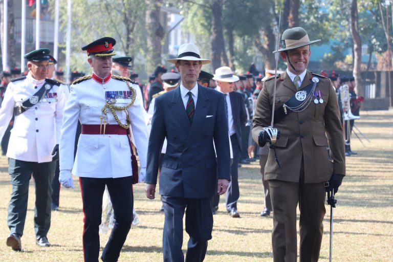 गण्डकी । संयुक्त अधिराज्य बेलायतका अधिराजकुमार एडिनब्राका ड्यूक एड्वर्ड र अधिराजकुमारी डचेस सोफीले आज पोखरास्थित ब्रिटिस क्याम्पमा आयोजित कार्यक्रममा बेलायती सेनामा औपचारिक रुपमा सामेल भएका दुई सय ७४ नेपाली युवाले प्रस्तुत गर्नुभएको परेड अवलोकन गर्नुुभएको छ । नेपालको भ्रमणमा रहनुभएका बेलायती अधिराजकुमार एड्वर्ड र अधिराजकुमारी सोफीले वार्षिक प्रमाणीकरण परेड अवलोकनसँगै